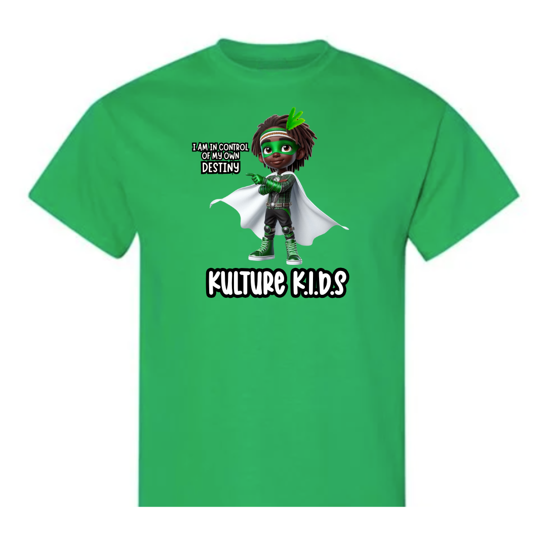 Let confidence take flight with this empowering “I Am in Control of My Own Destiny” t-shirt featuring MOSS, our grounded and fearless superhero. Dressed in green with his signature leaf crown and flowing cape, MOSS inspires young heroes to lead with heart, courage, and purpose.