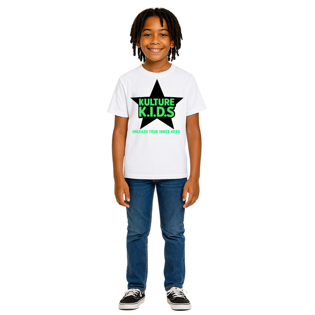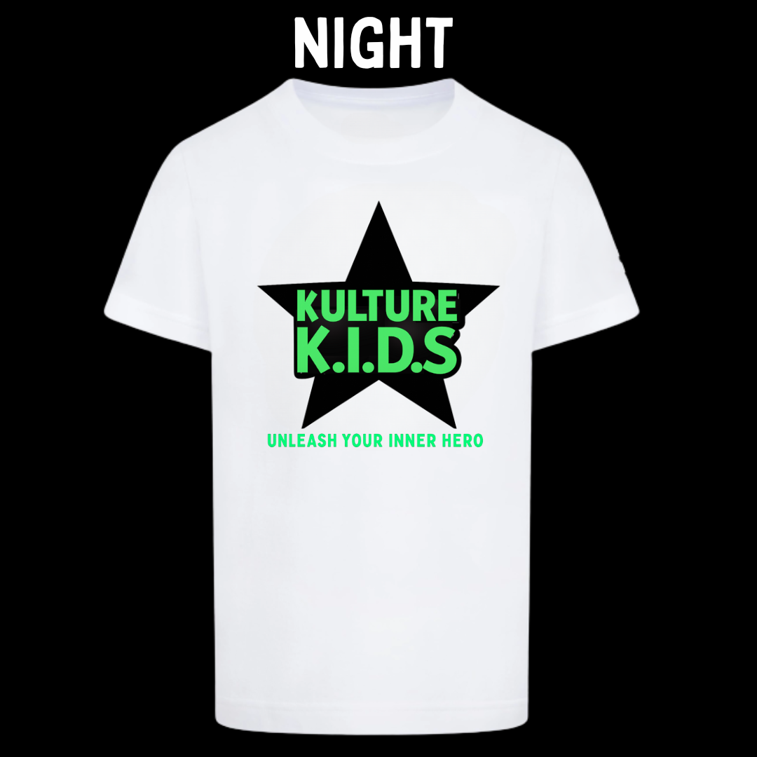 Our KULTURE K.I.D.S You're a Shining Star Glow-in-the-Dark T-Shirt is more than just a glowing badge of pride, positivity, and purpose. Featuring our bold star design and empowering message, this shirt lights up in the dark as a reminder to every Black and Brown child that their brilliance can never be dimmed. Whether at school, play, or superhero training, you are a star that shines from the inside and out.