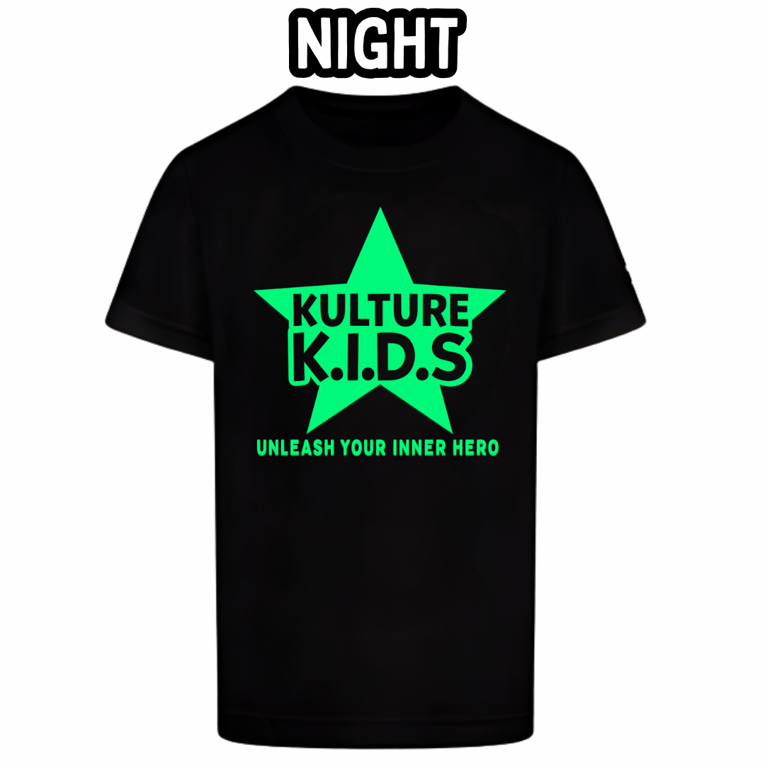 Our KULTURE K.I.D.S You're a Shining Star Glow-in-the-Dark T-Shirt is more than just a glowing badge of pride, positivity, and purpose. Featuring our bold star design and empowering message, this shirt lights up in the dark as a reminder to every Black and Brown child that their brilliance can never be dimmed. Whether at school, play, or superhero training, you are a star that shines from the inside and out.